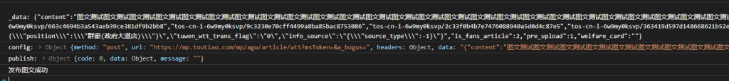 最后就是发布了,请求https://mp.toutiao.com/xigua/api/upload/PublishVideo接口,把前面数据拼在一起发布就行了,x-csrf-token在cookie里面就能拿到了