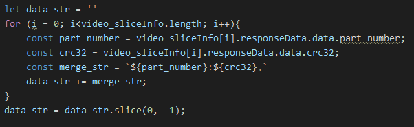 请求https://tos-lf-x.snssdk.com/upload/v1,这个接口跟上面的一样,是合并校验视频接口,url后缀不一样而已他的Payload是以键值对转换成字符串的形式传过去的, 这里需要去拼合一下,很简单,不过我代码写的很丑,你们就当看乐子就行了哈,返回的就是一些hash key值,我也不知道有啥用,但是根据我做发布的经验,这种分片后的最后一个接口一般都要请求,大概率就是合并的接口。